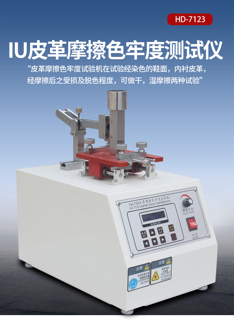 HD-7123(HOD-7123)皮革摩擦色牢度試驗機在試驗經染色的鞋面,內襯皮革,經摩擦后之受損及脫色程度,可做干,濕摩擦兩種試驗。